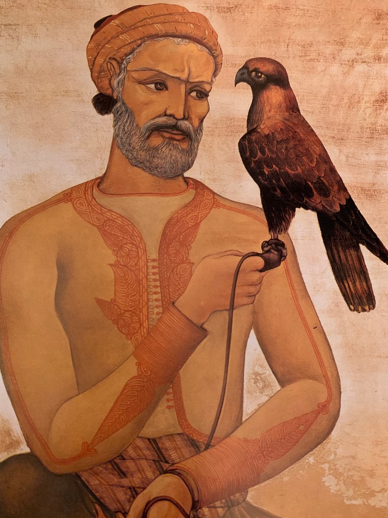 Les hommes ont gardé l’habitude de jouer avec les faucons comme l’illustre cette peinture de Jalel Ben Abdallah.