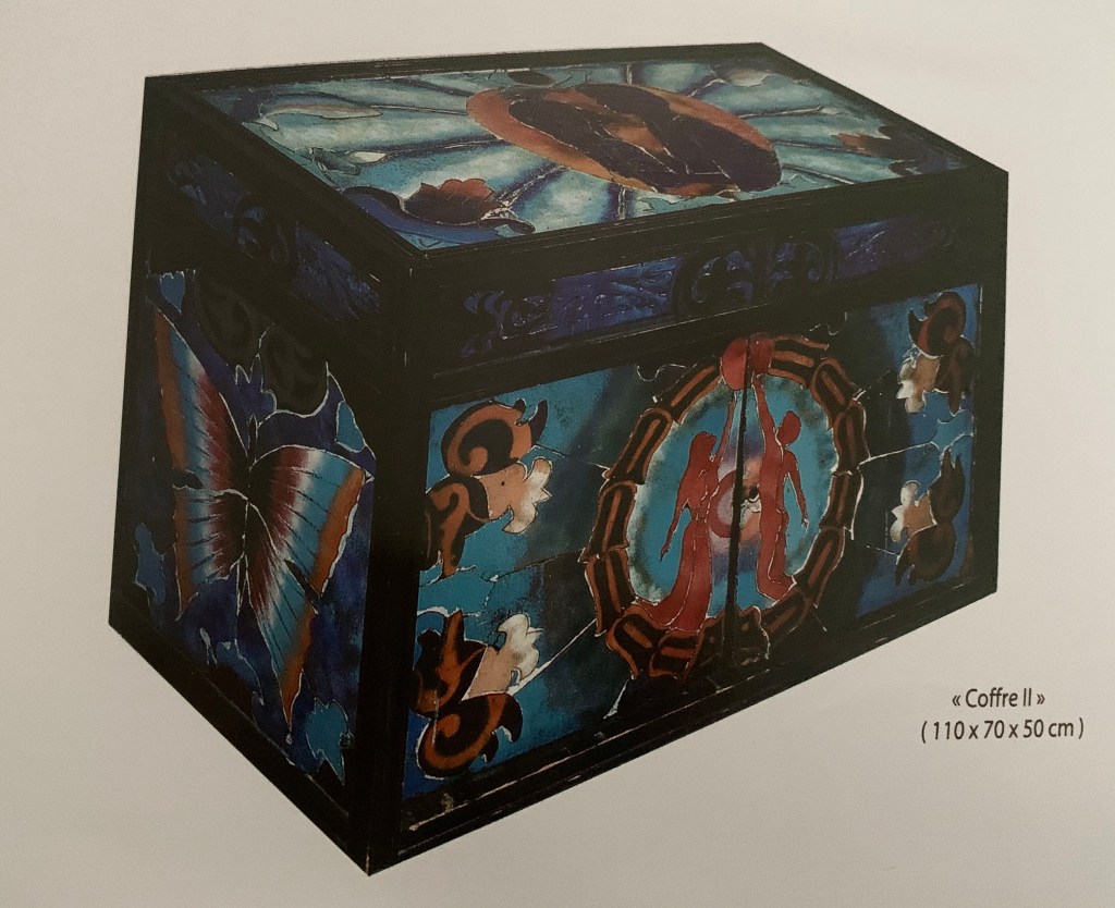 L’artiste a commencé ce savoir-faire par la création de coffres, de bijoux, et aussi de miniatures qui pressentaient ses sujets de prédilection, soit, le portrait et le paysage. Lorsqu’il atteint l’apogée de son parcours, son répertoire iconographique reflète son amour pour la patrie, son intérêt pour les formes symboliques et son vocabulaire éclectique, comportant des personnages emblématiques de la culture occidentale.